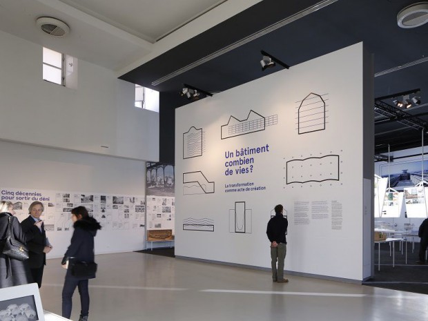 "C'est un focus particulier sur ce quoi travaillent les architectes : la transformation des bâtiments", déclare Francis Rambert, commissaire de l'exposition "Un bâtiment, combien de vies ?". "Il ne s'agit pas de 'réhabilitation', car ce terme est un mot de technique qui relève plus de la mise en conformité et n'est pas de l'ordre de la créativité, précise-t-il, mais bien de la transformation comme acte de création". Le décor est donc planté : l'exposition, qui a démarré au mois de décembre 2014 et se poursuivra jusqu'en septembre 2015, retrace 50 années de chantiers : "Cinq décennies pour sortir du déni, et où l'on est passé d'une logique de table rase, où l'on construisait ex nihilo, a une logique in vivo".