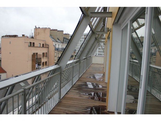 Au R+6, la toiture terrasse du studio R+5 est une terrasse commune, avec une vue imprenable sur les quatre tours construites dans les années 1970 par Martin Schulz van Treeck.