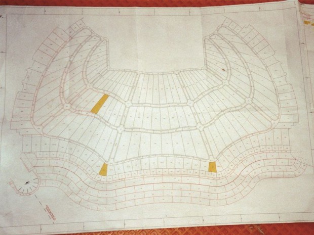 Les tuyaux de chauffage sont installés dans les espaces entre les plots des panneaux de polystyrène. Ces derniers ont parfois été taillés selon la géométrie de l'autel, suivant des courbes complexes.