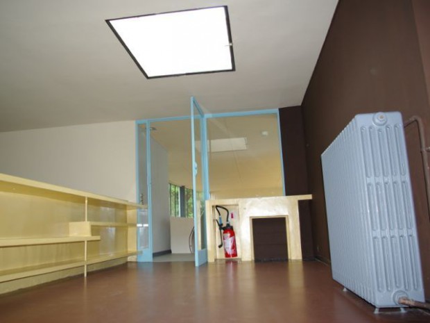 Dans cette pièce, Le Corbusier a réalisé un important travail sur la polychromie. Du coup, on y trouve du gris clair sur les murs, du bleu sur les portes, du brun sur le mur de la rampe...