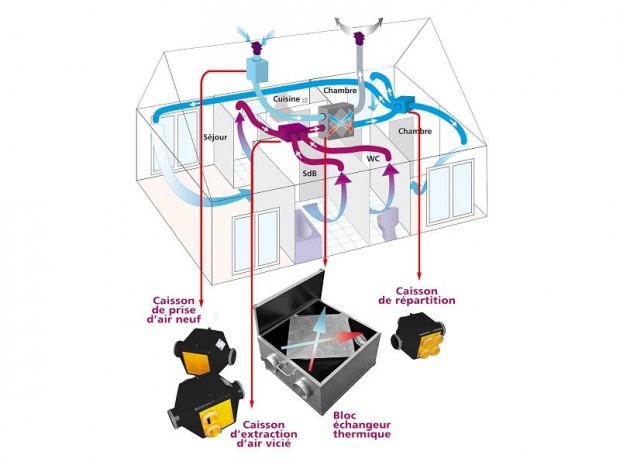 De son côté, Pavillon'Air DF 93 BC optimise le rendement des échangeurs à flux croisés : 93 % à 120 m3/h, attesté par un rapport d'essais Cetiat. Ses caissons sont équipés de turbines à haut rendement économes en énergie et bénéficiant du label GreenTech. En réduisant les déperditions d'énergie dues au renouvellement de l'air, cette VMC permet de conserver 93 % de l'énergie extraite par la maison. Modulaire et simple à installer, le système permet d'optimiser le positionnement des caissons dans le logement. Pour de bonnes performances acoustiques, les caissons motorisés peuvent être déportés. Le bloc échangeur thermique peut lui être placé dans un endroit accessible afin de faciliter l'entretien des filtres. Le système double flux est amorti en 3 ou 4 ans par rapport à une VMC simple flux classique, grâce aux économies de chauffage réalisées et à un coût d'entretien réduit. Evolutif, il propose différentes options : batterie de préchauffage de l'air neuf, télécommande radio-temporisée, système by-pass électrique.