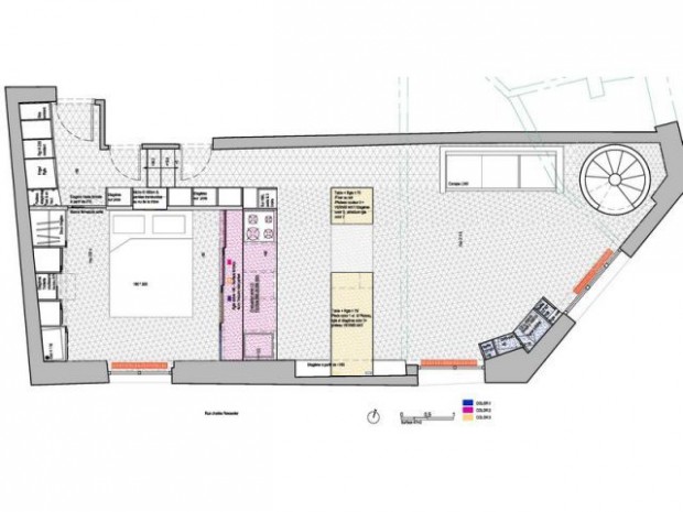 Ce plan représente l'agencement quasi-définitif de la pièce. Par rapport au plan précédent, on peut remarquer la présence d'un grand nombre de meubles qui créent une cloison naturelle autour du lit (en bas, à gauche sur le plan).
