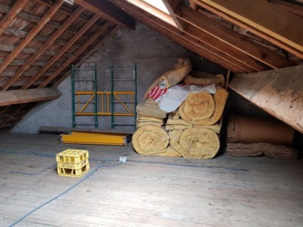 Au dernier étage de la maison, les combles s'étendaient sur 48 m2 au sol, avec une hauteur sous le faîtage suffisamment importante pour envisager d'aménager une petite pièce.