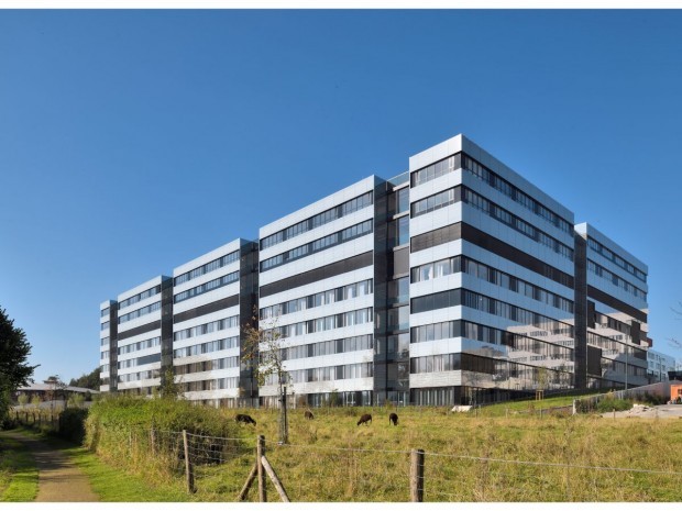 Brunet Saunier Architectes signe la réalisation de l'Institut Jules Bordet, un centre de cancérologie à Bruxelles (Belgique). Auparavant situé Porte de Hal, en plein cœur de la capitale, le centre aux neuf étages et six patios est désormais installé au sein du Campus Erasme à Anderlecht, à quelques pas de la frontière entre la région de Bruxelles Capitale et la région flamande. Le but est que l'institut devienne "un cancéropôle intégré d'excellence à l'échelle européenne voire mondiale, capable d'assurer une prise en charge globale des pathologies cancéreuses depuis le laboratoire où de nouveaux traitements sont développés jusqu'aux lits des patients sur lesquels ces traitements sont testés", explique le cabinet d'architecture.