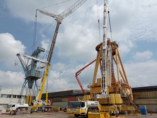 DÉMOLITION. Le chantier de démantèlement de deux engins de manutention et de maintenance de la première génération de sous-marins nucléaires s'étalera jusque fin 2025. L'ancien bassin servant à leur mise hors-d 'eau lors des interventions techniques sera également démoli. Pour l'heure, cette future friche industrielle n'a pas encore trouvé d'affectation foncière bien définie.