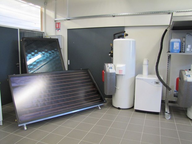 Les salles de formation sont regroupées par thématique, comme ici l'eau chaude sanitaire. La plus demandée aujourd'hui, selon Atlantic, concerne les pompes à chaleur.