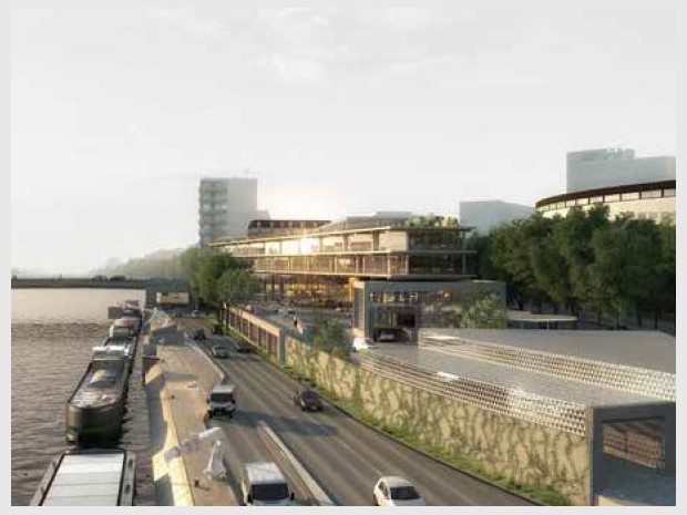 Le projet associe conservation, réhabilitation du socle des parkings existants et aménagement, et enfin la construction d'éléments neufs en superstructure. "La lisibilité des activités est remarquable, avec un traitement architectural de grande qualité, ainsi qu'une généreuse accessibilité du public aux espaces en belvédère sur la Seine. L'innovation en lien à l'eau et les qualités environnementales sont inhérentes au programme", complète le lauréat Sogaris. Le lien avec le fleuve, et particulièrement le transport fluvial, sera omniprésent et sera très développé.