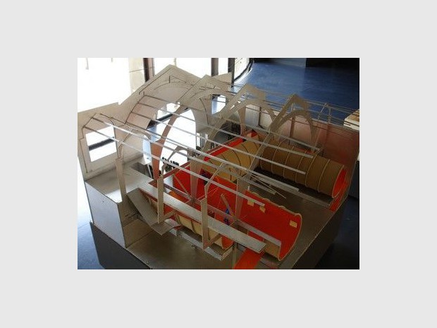 Architecture éphémère, la scénographie s'apparente en quelque sorte à une maquette grandeur nature qui se glisse dans une enveloppe.