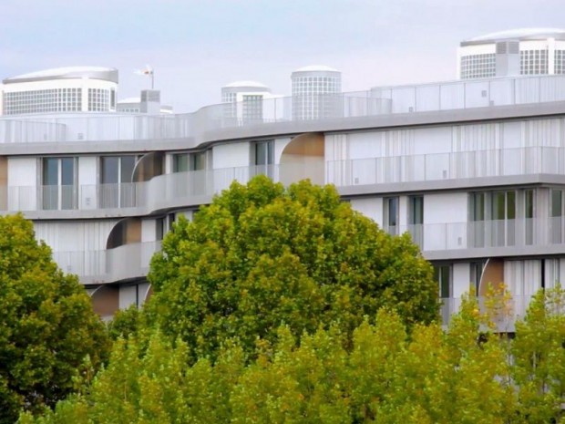 Sur le quai Henri IV, dans le 4e arrondissement de Paris, l'architecte allemand Finn Geipel, de l'agence LIN architectes urbanistes, a imaginé l'immeuble Nouvelle Vague. En son sein, se trouvent 144 logements sociaux et en accession libre. "Nous avons essayé de donner une vue sur la Seine à une grande partie des appartements", explique-t'il. La particularité des logements en accession est qu'ils sont construits autour de cages d'escalier "ovaloïdes" qui laissent entrer la lumière par le haut. Les logements sociaux disposent eux de paliers ouverts avec vue sur le jardin de la cour intérieure. "On a essayé malgré la densité de faire beaucoup de logements traversants. On était assez fascinés par Henri Sauvage et ses gradins et en avons essayé une réinterprétation", précise Finn Geipel.