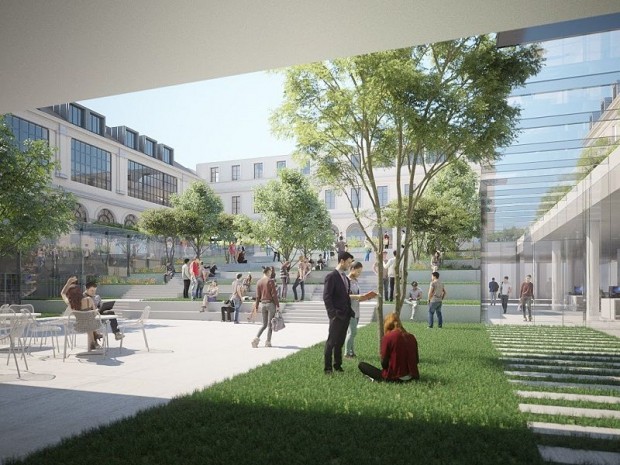 L'architecte Jean-Michel Wilmotte explique : "Des trémies amèneront la lumière zénithale". Enthousiasmé par l'ampleur du projet, il raconte : "Un hectare en plein Paris, c'est extraordinaire. Et c'est une chance inouïe pour Sciences Po et pour les bâtiments". Pour lui, les lieux seront respectés et trouveront une nouvelle valeur d'usage, plus partagée. Dans la cour Gribeauval, un bâtiment émergera, afin de faire tenir tous les 14.000 m² nécessaires au site. Pour Jean-Michel Wilmotte, il sera "léger" et semblera "flotter", tandis que pour Hiroko Kusunoki, de l'agence Moreau-Kusunoki, il constituera "un nouveau symbole, une vitrine de Sciences Po".
