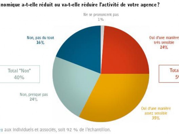 Parmi les architectes individuels et associés interrogés, trois sur cinq (59%) ressentent ou pressentent l'impact de la crise sur l'activité de leur agence, un quart (24%) estimant même que cet impact est ou sera très sensible.