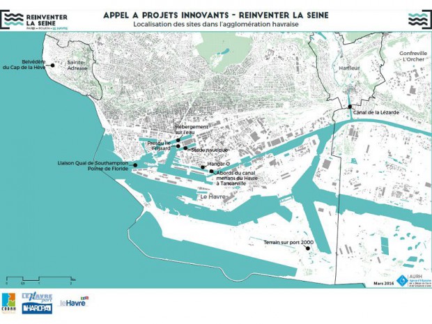 Différents terrains situés sur les quais et en bordure de canaux sont également mis à la disposition des urbanistes et aménageurs, tout comme le belvédère du cap de la Hève, "qui offre une vue remarquable sur la baie de Seine", et qui est qualifié de "lieu absolument unique en lien fort avec les éléments", "installé sur une falaise abrupte dominant la mer".