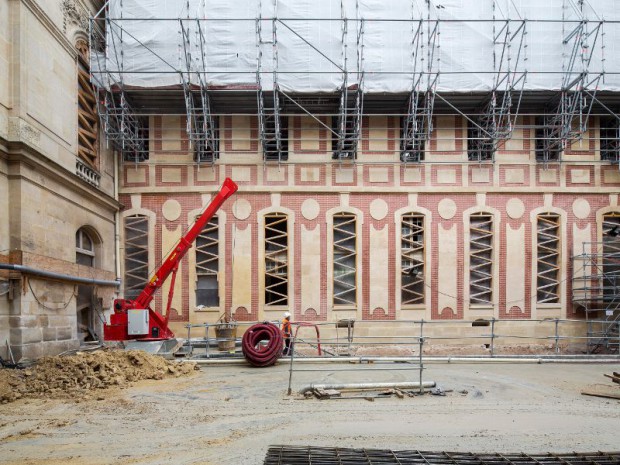 Enfin, la volonté de libérer intégralement le plan au niveau de la cour afin d'assurer la lisibilité du circuit de visite a complexifié encore l'équation de projet, les surfaces disponibles restantes ne permettant pas de recevoir l'ensemble des fonctions nécessaires à l'accueil du public. "Accessibles hors douane depuis la façade sud du pavillon Dufour, le futur restaurant et l'auditorium prennent respectivement et assez naturellement place aux premier et deuxième étages", conclut Dominique Perrault. Et pour quitter la demeure du Roi-Soleil, le visiteur empruntera à nouveau le sous-sol puis un grand escalier de pierre à l'air libre.