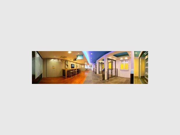 Vue d'ensemble d'une boutique. Développer le conseil, offrir des solutions font partie des objectifs des futures boutiques Maisons de Lumière by Technal.