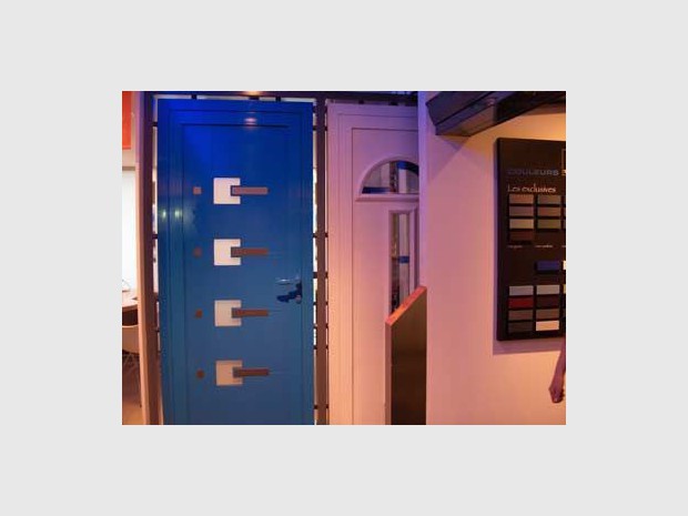 Astuce du magasin qui présente sous forme de portes coulissantes différents modèle de porte.