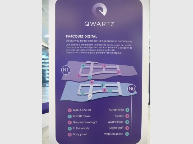 Le chantier, débuté en octobre 2011 par la réalisation des fondations, des pieux de 15 à 20 mètres de haut fichés dans le sol, s'est finalement achevé au début de 2014. "C'est un succès commercial car nous réunissons, dès l'inauguration, 165 enseignes. Et nous intégrons de nouveaux concepts d'animation numérique et d'œuvres interactives. Nous suivons le mode de consommation du 21e siècle associant le physique et le numérique", précise Alain Taravella d'Altarea Cogedim. Un "Experience store" permettra à de jeunes créateurs et à des enseignes de disposer d'un espace commercial temporaire bien situé dans le mail, tandis qu'un service de géolocalisation apportera une aide aux visiteurs pressés de trouver la boutique de leur choix. En tout, le centre commercial aura nécessité un investissement de 300 M€ environ, un montant équivalent à celui du chiffre d'affaires annuel espéré. "La zone de chalandise couvre 1 million de personnes à 15 minutes de voiture", explique le promoteur qui admet que le centre, disposant de 3.000 places de parking gratuites, fonctionnera davantage avec l'automobile qu'avec les transports ferrés, un peu plus distants. Par son offre diversifiée, le Qwartz espère attirer entre 10 et 11 millions de visiteurs par an, en dépit de sa relative proximité avec les centres des Quatre Temps (La Défense) et So Ouest (Levallois-Perret).