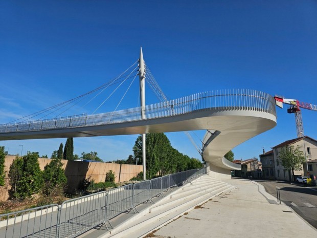 Il aura fallu deux ans de travaux pour voir surgir la nouvelle passerelle de Bourg-Lès-Valence (26). L'ouvrage, qui se jette au-dessus de l'autoroute A7, est destiné aux modes doux. Ainsi, cyclistes, joggers, piétons, mais aussi personnes à mobilité réduite,