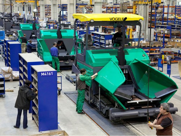 Au terme d'un an et demi de travaux, les machines du spécialiste des finisseurs routiers, Vögele, sont désormais produites dans la nouvelle usine de Ludwigshafen en Allemagne.