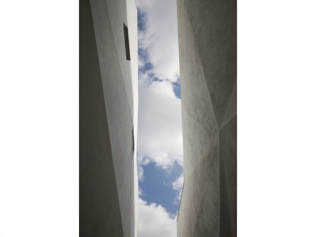 "Tel un rocher 'fissuré', les failles brutes et irrégulières créent un passage urbain à travers l'îlot et une percée visuelle dans le prolongement de la rue existante."
