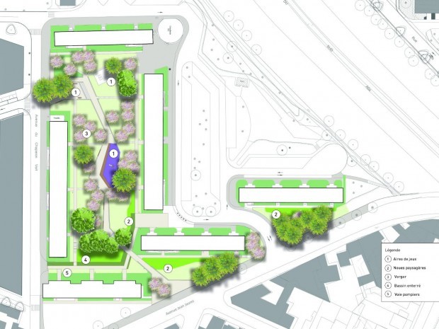 L'îlot 5 du Chaperon vert est le dernier à être traité dans le cadre de l'opération de renouvellement urbain, bénéficiaire du premier programme national de rénovation urbaine. Situé sur la commune d'Arcueil, il est composé de six bâtiments de hauteurs moyennes (R+4 et R+5), rassemblant 264 logements. "Les bâtiments présentent une qualité urbaine et architecturale spécifique qui méritent notre respect" annoncent d'emblée les architectes de RVA. "La trame orthogonale du plan d'ensemble développe des sous-ensembles résidentiels facilement appropriables par les habitants. La structure des constructions en béton armé et remplissage en panneaux de briques offre une grande pérennité architecturale. La structure en poteaux poutre permet une réelle flexibilité dans la distribution interne et a largement facilité les restructurations de logements. Enfin, de nombreux logements sont traversants, gage de confort et d'ensoleillement".