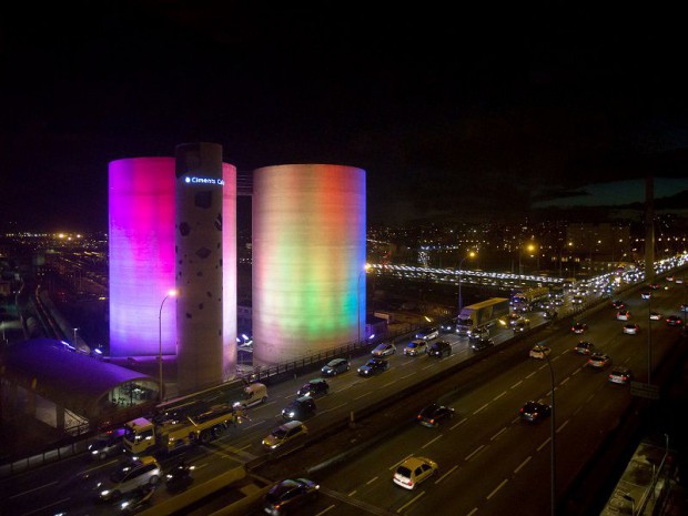 Ciments Calcia, la Semapa et la Mairie de Paris ont choisi Laurent Grasso pour faire vivre les deux cylindres aveugles de l'unité de distribution implantée sur le périphérique sud, dans le 13e arrondissement parisien. L'œuvre, intitulée "SolarWind", est une projection monumentale sur les parois de béton de plus de 40 mètres de hauteur et de 20 mètres de diamètre. De quoi illuminer le trajet de plus d'un million d'automobilistes empruntant chaque jour cette portion de ceinture routière.