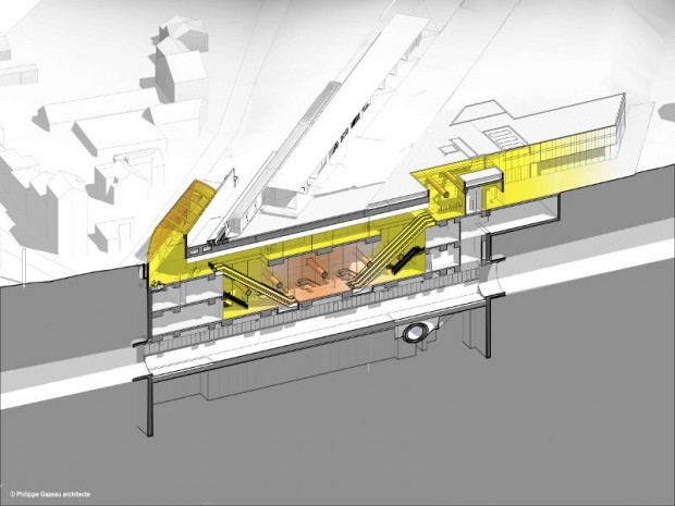 La complexité du site et la multiplicité des accès ont incité l'architecte Philippe Gazeau à simplifier au maximum la circulation du voyageur dans la gare. "A ce titre le parti fonctionnel de réunir autour d'une rue hors contrôle, sous les voies ferrées du Transilien, l'ensemble des fonctions propres à la gare permet de retisser du lien entre des quartiers, des villes, mais permet également de créer une atmosphère autour de ces fonctions et de cette nouvelle connexion urbaine", explique-t-il.