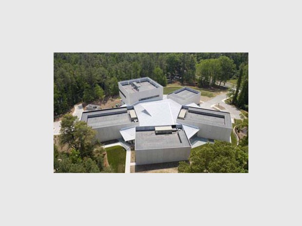 Description : Cinq pavillons accueillent chacun un élément du programme du musée : une exposition permanente, deux expositions temporaires, un auditorium, un lieu d'activités éducatives et les services administratifs. Ces cinq pavillons définissent un atrium de plan pentagonal irrégulier. Cet espace qui sert d'entrée principale et de galerie de sculpture est couvert d'une légère canopée de verre et d'acier, sans supports apparents. Entre les pavillons, il bénéficie de grandes ouvertures vitrées, sur le paysage alentour. Son sol d'ardoise se prolonge à l'extérieur pour brouiller la frontière entre les espaces et dessiner des terrasses.
