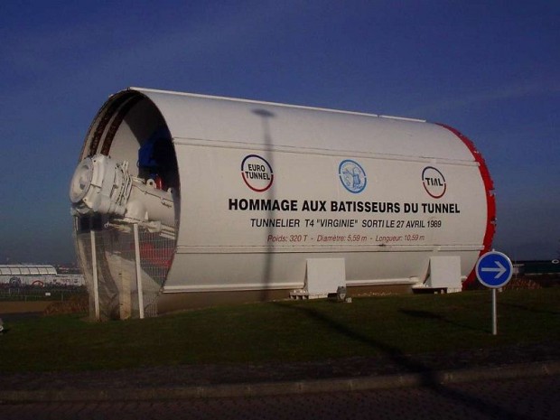 Un des cinq tunneliers français, le T4 baptisé "Virginie". De petit diamètre, il a servi au creusement de la galerie de service, plus étroite que les tubes ferroviaires.