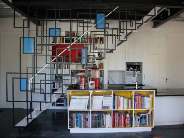 Passionnés par Mondrian, l'architecte a réalisé pour la famille, un escalier à l'image de l'artiste : géométrie et couleur pour un style hors du commun.
