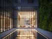Les résidents pourront accéder au hall d'entrée de la future tour Greenwich West par de grands escaliers. Généreuse, la salle d'accueil se composera de travertin blanc, de menuiseries en bois de rose et de panneaux muraux en cuir naturel. Des fenêtres à double hauteur offriront une vue dégagée sur le jardin vertical du botaniste Patrick Blanc, un des spécialistes français ayant participé à la conception du projet. Le hall d'entrée fera référence à l'Art déco en arborant des angles arrondis et d'épaisses arches.