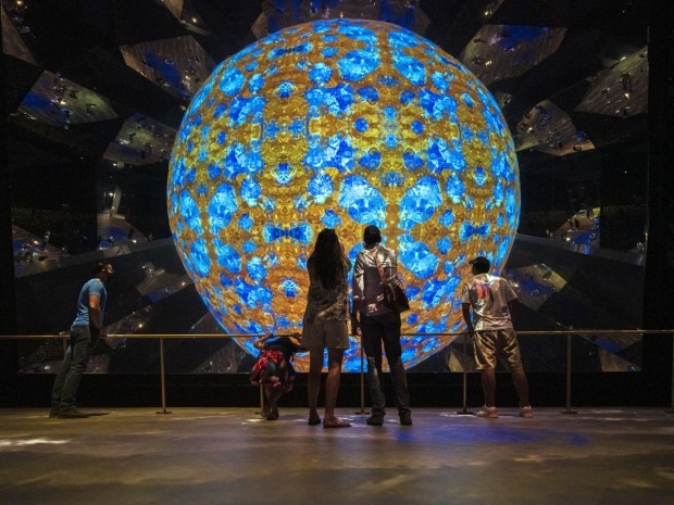 L'espace d'exposition "Vision" transporte les visiteurs dans un monde psychédélique aux motifs traditionnels élégants et aux couleurs pop grâce à un kaléidoscope audiovisuel colossal. Le globe de 30 mètres de diamètre est "associé à un sol interactif, qui invite les visiteurs à une exploration artistique de l'essence à multiples facettes de l'Arabie Saoudite. Les murs réfléchissants du kaléidoscope ont été créés avec des textiles sans couture tendus sur une sous-structure", raconte Alex Manresa. Au total, environ 8.000 lumières Led ont été utilisées pour ce pavillon.