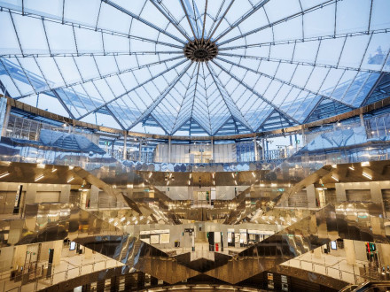 Afin qu'elle parvienne jusqu'aux niveaux les plus bas, la lumière naturelle pourra se refléter sur les revêtements miroir qui habilleront les escaliers mécaniques ainsi que l'ouvrage cadre de la ligne 14.