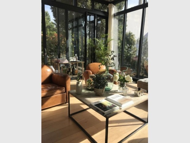 Très lumineux, le salon profite largement des rayons du soleil. "L'objectif était faire entrer la lumière, et la pièce est vraiment très bien éclairée, y compris les jours où il fait gris !" assure l'architecte d'intérieur. Une atmosphère des plus agréables donc, qui voyage jusque dans les pièces voisines, en particulier l'ancien salon, reconverti en salle à manger, et qui s'est retrouvé privé d'ouverture directe sur l'extérieur.
