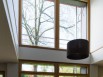 "On ne pouvait pas installer de grandes fenêtres sur le côté ouest, nous avons donc décidé de créer une petite ouverture en verre dépoli", souligne l'architecte. La lucarne respecte le plan local d'urbanisme qui interdit de construire une fenêtre à moins de huit mètres de distances des voisins. Elle apporte tout de même énormément de lumière au salon.