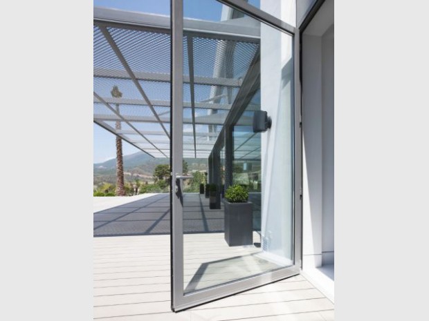 La structure en aluminium est transparente et respecte parfaitement les codes architecturaux de la villa.