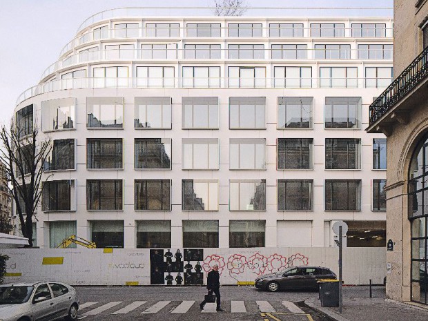 Cette restructuration en profondeur s'est assortie d'une écriture architecturale contemporaine qui unifie l'ensemble des éléments de patrimoine de l'édifice. "La façade de l'ancien hôtel industriel constitue donc la porte principale sur la rue Ménars, elle-même prise en étau entre deux façades assorties uniformément blanches et vitrées au carré", signale l'architecte.